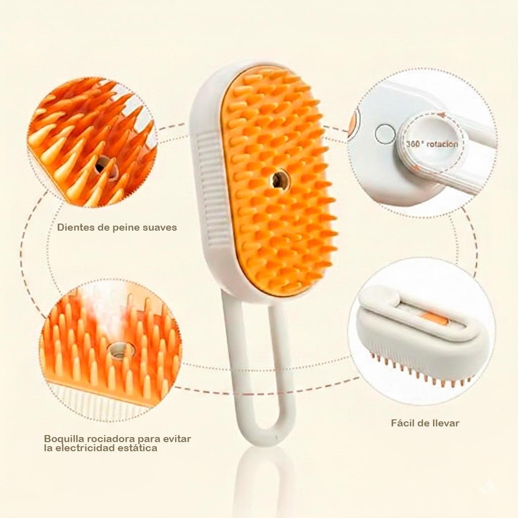 El vapor suaviza el pelaje y elimina nudos sin tirones ni molestias.